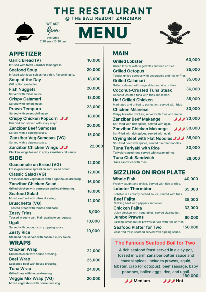 The Restaurant @ The Bali Resort Zanzibar